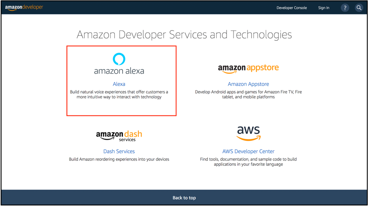 Services in the Developer Tools Console. You might be prompted for your AWS credentials. Go to Alexa from the menu. The Amazon Developer Services portal allows developers to distribute and sell Android and HTML5 web apps to millions of customers on the Amazon Appstore and build voice.